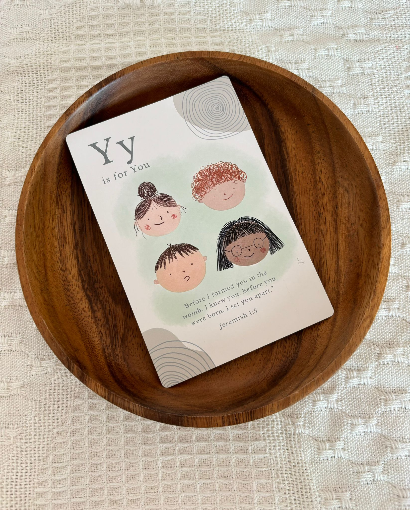 Our cards are all hand drawn in house, with soft yet vibrant colour. We hope to offer a fun and engaging way for children to learn the alphabet while also becoming acquainted with important Bible stories and characters through the alphabet and verses. Perfect for use at home, in Sunday school, or in Christian educational settings, these flash cards help lay a strong foundation for both academic and spiritual development in young children.